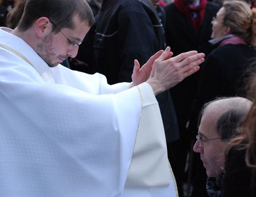 sacerdote imponiendo las manos