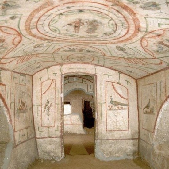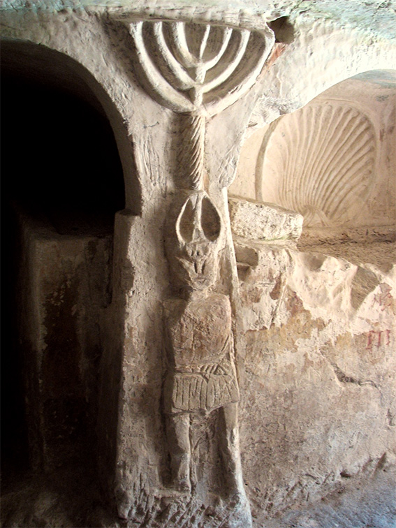 Uno o dos siglos antes de que los cristianos de Roma empezasen a construir catacumbas ya lo estaban haciendo allí los judíos. Las catacumbas judías más antiguas son las de Villa Torlonia, que datan del siglo I antes de Cristo y se encuentran llenas de pinturas con representaciones de candelabros, el arca, las tablas de la Ley, etc. pero también plantas, animales y personas, lo cual demuestra que esta comunidad judía interpretaba la prohibición bíblica al modo católico, que no se prohíbe hacer imágenes sino a hacer ídolos para adorarlos en lugar de a Dios: «No te harás ídolo, ni semejanza alguna de lo que está arriba en el cielo, ni abajo en la tierra, ni en las aguas debajo de la tierra. No los adorarás ni los servirás…» (Éxodo 20:4-5).