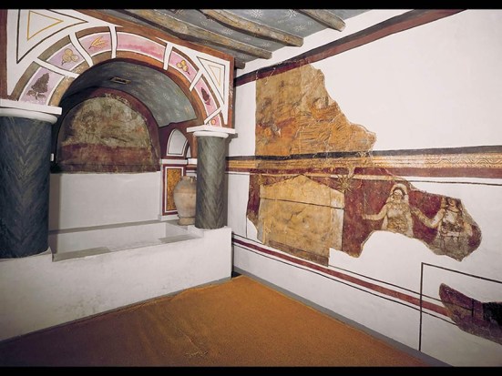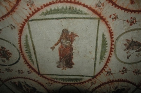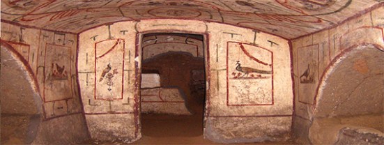 Pero aunque la mayor riqueza de imágenes en los siglos II al IV esté en las catacumbas de Roma, no olvidemos que también se han conservado algunas pinturas funerarias en otras partes del imperio, como las bellas cámaras funerarias de Tesalónica, con escenas a tamaño natural que siguen en gran medida los modelos iconográficos usados en las catacumbas romanas.