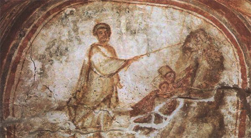 La temática es del Antiguo Testamento pero no puede ser judío porque como hemos visto los judíos nunca representaban imágenes en sus osarios, y además esa escena bíblica no tendría para ellos significado alguno en un contexto de muerte. Sin embargo los cristianos desde el principio lo consideraron como un símbolo de la resurrección, pues Jonás estuvo en el vientre de la ballena 3 días y luego salió, del mismo modo que Jesús estuvo en las entrañas de la roca 3 días y luego salió. Y fue el propio Jesús quien estableció tal conexión: